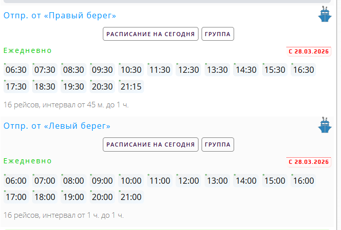 Расписание переправы (г. Тутаев):