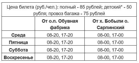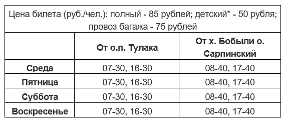 ! Возможна корректировка расписания по причине неблагоприятных гидрометео условий!